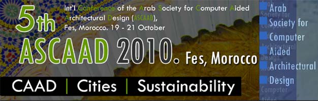 The fifth International Conference of the Arab Society for Computer Aided Architectural Design ASCAAD 2010 will be held in the “Ecole National D’Architecture de Fès, Moroc”. National School of Architecture in Fes, Morocco. ASCAAD is a society of those who teach and conduct research in computer-aided architectural design (CAAD) in schools of architecture in the Arab region of West Asia, and North Africa. ASCAAD is also active in Central Asia, Sub-Sahara Africa, and the Mediterranean. ASCAAD is one of five sister organisations in CAAD worldwide that share the same mission: ACADIA (North America, founded 1981), eCAADe (Europe, founded 1983), CAADRIA (Asia, founded 1996) and SIGraDi (Ibero-America, founded 1997). There is also CAADFutures foundation but with a world wide scope.